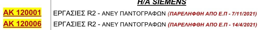 Οι ηλεκτράμαξες 120.001 ,120.006 είχαν κάνει εργασίες γενικής επισκευής στο εργοστάσιο Πειραιά .Από το εργοστάσιο παραδόθηκαν στις 7/11/2021 και στις 14/4/2021 χωρίς να έχουν παντογράφους (σύμφωνα με το έντυπο πάντα)