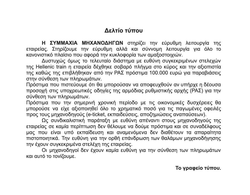 Δελτίο Τύπου ΣΥΜΜΑΧΙΑΣ ΜΗΧΑΝΟΔΗΓΩΝ