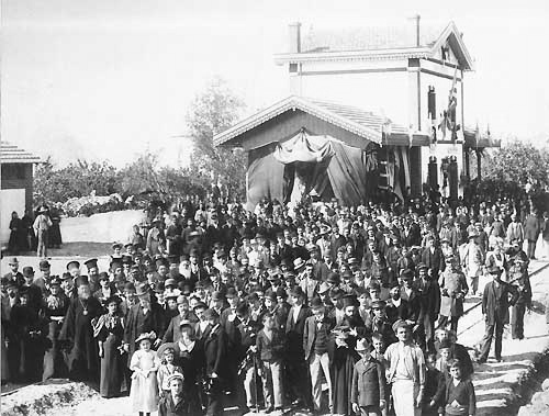 Στις 11 Νοεμβρίου 1882 αναγγέλνεται η άφιξη στο Βόλο δύο ολλανδικών πλοίων, γεμάτα με ατσάλινα ελάσματα για τις γραμμές του σιδηρόδρομου, του οποίου οι εργασίες της κατασκευής προχωρούσαν με ταχύ ρυθμό. Κι έτσι στις 3 Φεβρουαρίου 1883 δοκιμάζεται πάνω στις στρωμένες γραμμές η πρώτη ατμομηχανή «εν μέσω ζητοκραυγών», όπως γράφει ο ανταποκριτής του περιοδικού. Τρεις μήνες αργότερα, η διαδρομή από το Βόλο στο Βελεστίνο εκτελείται σε μία ώρα και ένα τέταρτο, ενώ η επίστρωση προχώρησε και 4 χιλιόμετρα πέρα από το Βελεστίνο, προς τη Λάρισα [βλ. Δελτίο 5 Μαΐου 1883]. Κι ακόμα «Αι εργασίαι του από Βόλον εις Λάρισαν σιδηροδρόμου προβαίνουσιν δραστηρίως. Η διά σιδηρών ράβδων στρώσις συνετελέσθη μέχρι Γενερλίου, θα φθάσει δε μέχρι Λαρίσσης, περί το τέλος του προσεχούς Ιουλίου. Ατμομηχαναί εκομίσθησαν έτι δύο νέαι, αίτινες και χρησιμοποιούνται ήδη προς ταχείαν των εργασιών περάτωσιν. Υλικόν κομίζεται καθ’ εκάστην, τοσαύτη δε επικρατεί δραστηριότης εν ταις εργασίαις, ώστε καθ’ ά γράφει η εγχώριος «Θεσσαλία», κατά πάσαν πιθανότητα την 1η Ιανουαρίου του 1885, έσεται αποπερατωμένον ολόκληρον το σύμπλεγμα των Θεσσαλικών σιδηροδρόμων [βλ. Δελτίον της Εστίας, 26 Μαίου 1883].