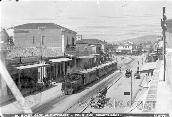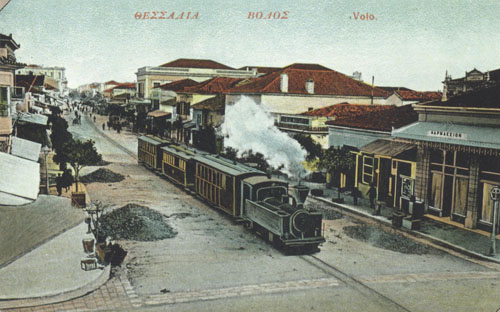 επιβατηγά και φορτηγά μαζί βαγόνια. Το τροχαίο υλικό αποτελούνταν από 14 επιβατικές άμαξες, 12 φορτηγά βαγόνια και 5 ατμομηχανές TUBIZE, βελγικής κατασκευής, με κεκορεσμένο ατμό, χάλκινες εστίες και επίπεδους ατμοσύρτες. Τα ονόματα των μηχανών είταν «Βόλος», «Τσαγκαράδα», «Ιάσων», «Πήλιο», και «Μηλέαι». Στους καλοκαιρινούς μήνες, κυκλοφορούσαν και τροχιόδρομοι μεταξύ του σιδηροδρομικού σταθμού του Βόλου και της παραλίας του Άναυρου με μικρές ατμάμαξες.
