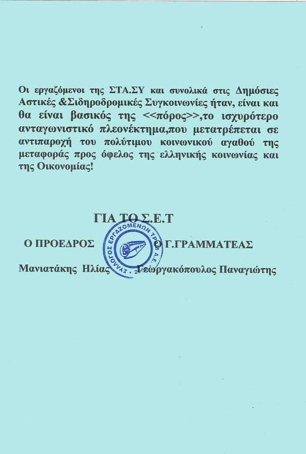 Δελτίο Τύπου -Σ.Ε.Τ ΤΡΑΜ
